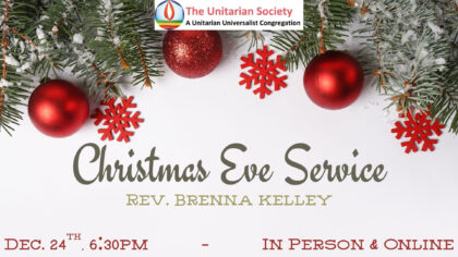 Join the TUS community as we celebrate Christmas Eve with song. There will be plenty of beautiful music, along with seasonal readings and reflections. One of the time-honored traditions of this service is singing “Silent Night” in community as we light candles together. This special service will be followed by holiday cookies and fellowship.